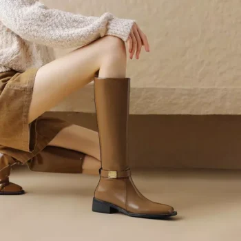 Vintage Knee-High Western Boots for Women – Buckle Detail, Low Heel