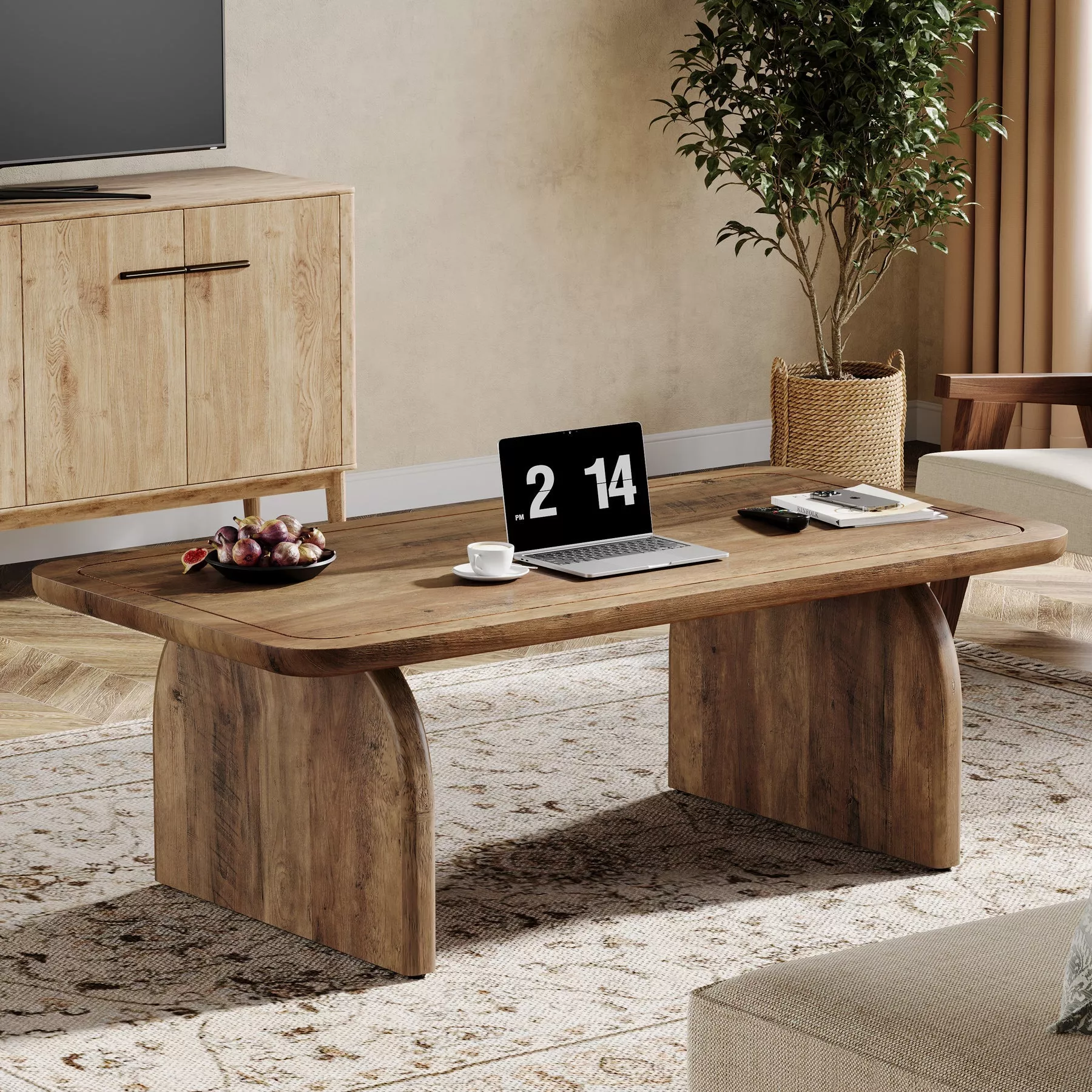 Rustic Farmhouse Rectangular Coffee Table with Storage Shelf, 47″ Wood Centerpiece