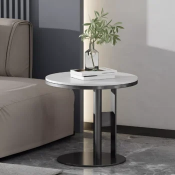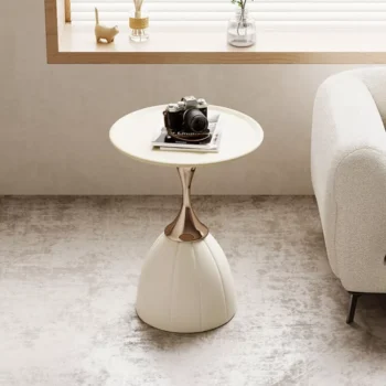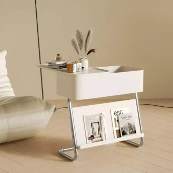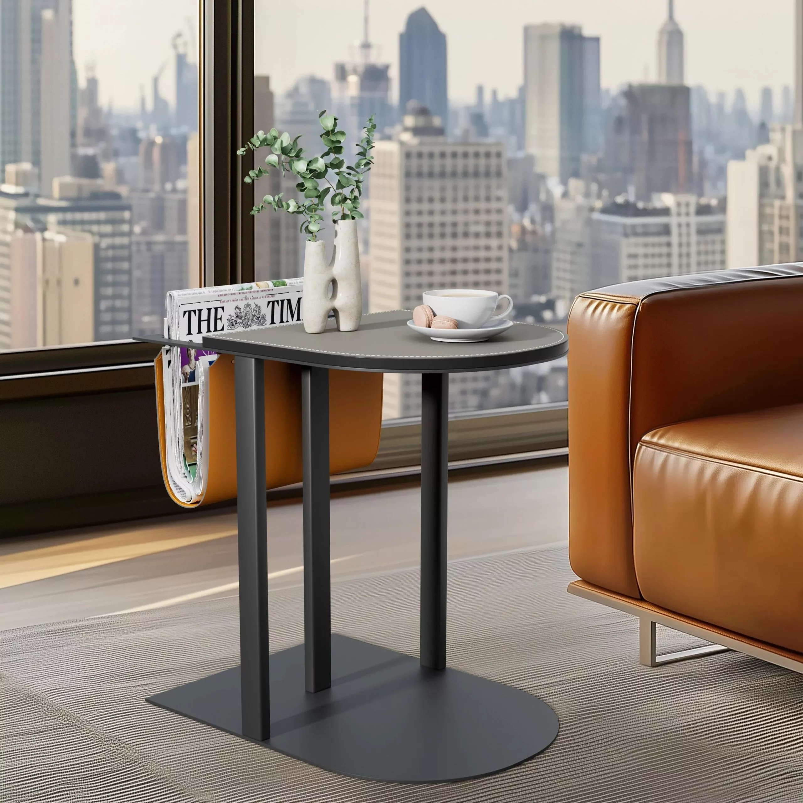 Luxury C-Shaped End Table with Leather Magazine Rack