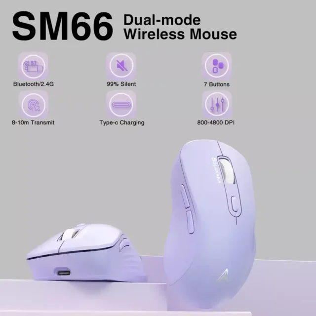 Upgrade your everyday computing experience with this silent dual mode wireless mouse that combines comfort, precision, and versatility. Designed to keep up with both office tasks and gaming sessions, it features a lightweight ergonomic build that feels natural in your hand. With seamless switching between Bluetooth and 2.4GHz wireless modes, you can easily connect to your laptop, PC, tablet, or phone without missing a beat.