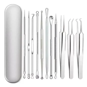 11-Piece Blackhead Remover and Pimple Extractor Tool Kit with Tweezers
