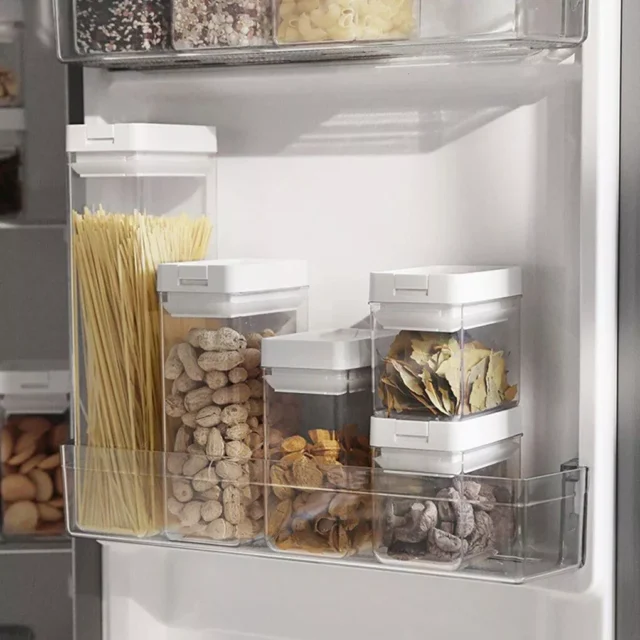 The Sleek Square Storage Jar stands out with its unique features. The silicone sealing pad ensures your food stays clean and protected, while the locking part secures the contents, prolonging their freshness. Its clear design not only makes it easy to find what you need but also adds a touch of elegance to your kitchen decor.