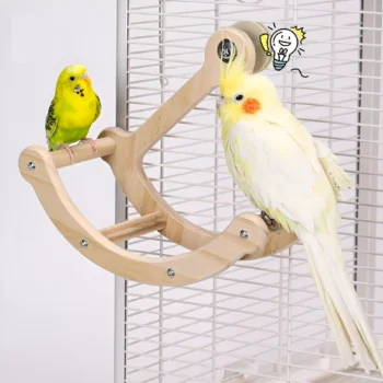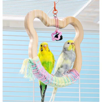 Wooden Parrot Swing & Training Toy for Parakeets and Small Birds