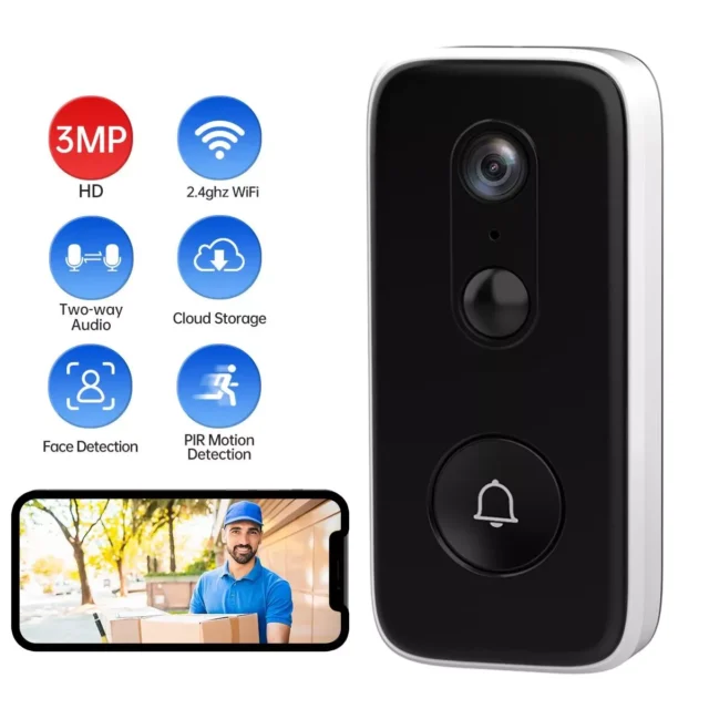 Turn your doorstep into the first line of defense with this Smart WiFi Video Doorbell. Designed for modern homes, this compact, powerful device gives you full control over who comes to your door—no matter where you are. Featuring crystal-clear 3MP HD video, wide-angle coverage, and two-way audio communication, it’s more than just a doorbell—it’s your personal doorman, day or night.