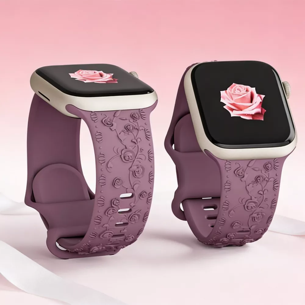 Rose Floral Engraved Silicone Strap for Apple Watch 38-49mm