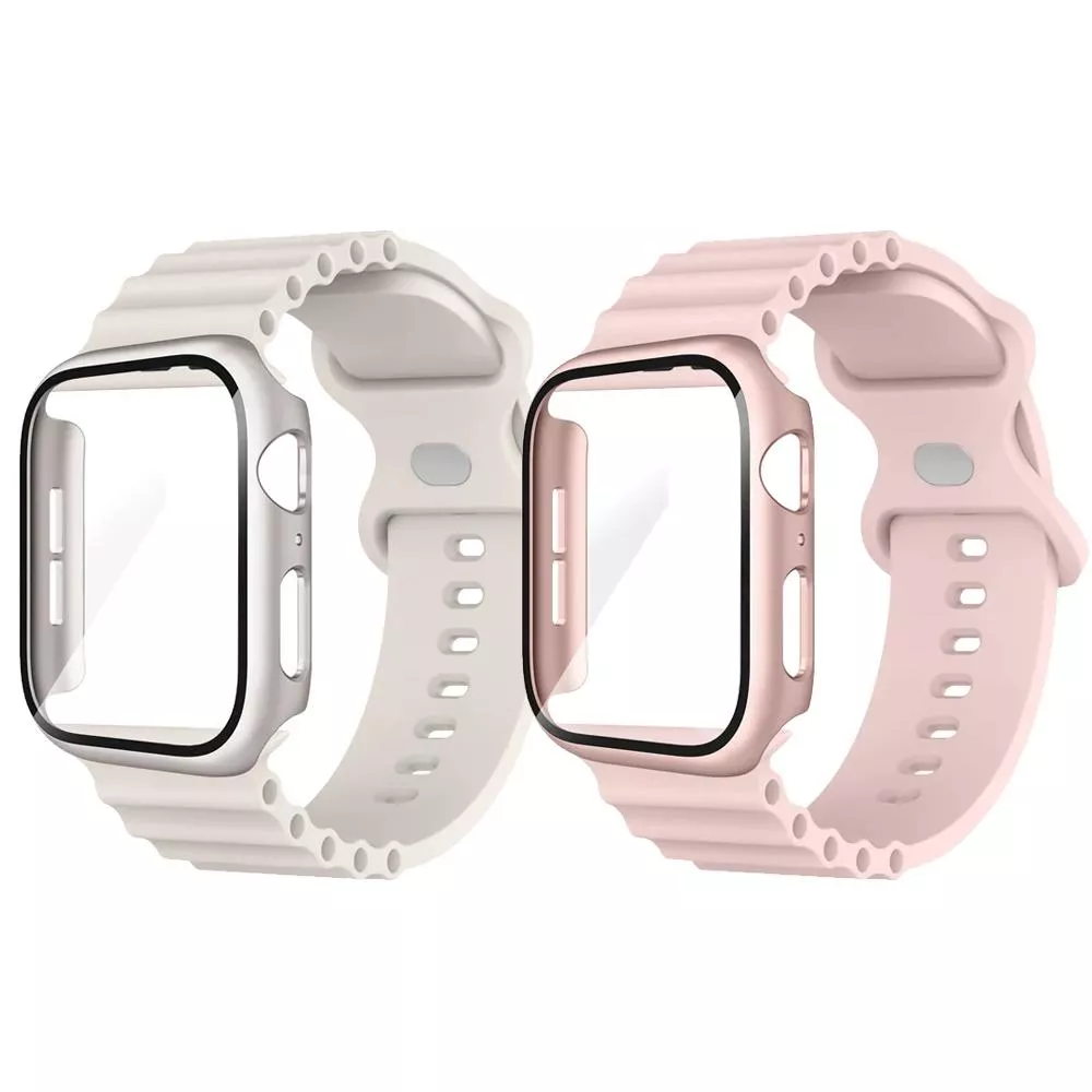 Protective Glass Case & Silicone Band for Apple Watch (38–46mm)