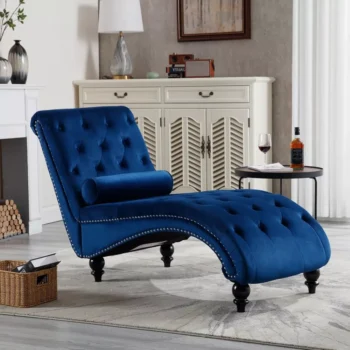 Velvet Button Tufted Lounge Chair with Pillow