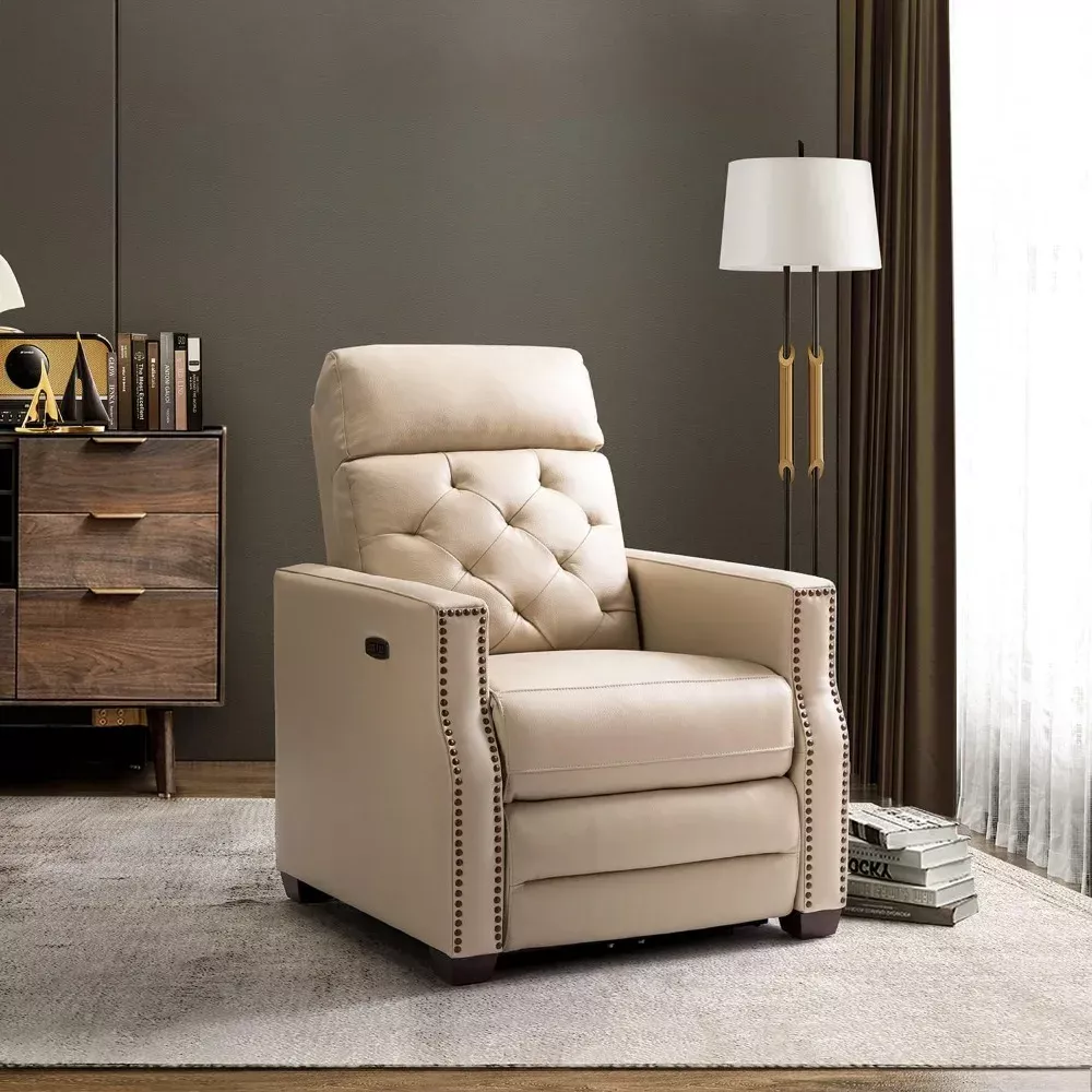 Genuine Leather Power Recliner Chair with USB, Tufted Nailhead Lounge Seat