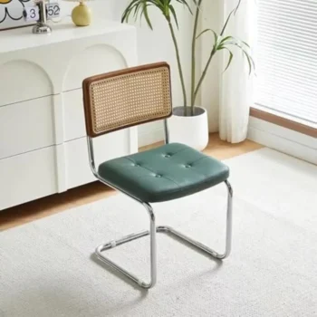 Mid-Century Modern Armless Dining Chairs with Rattan Backrest and PU Leather