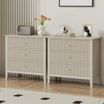 Set of 2 Modern 3-Drawer Nightstands, 30-Inch Tall Fluted Chests with Storage