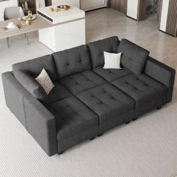 Modular Sectional Sleeper Sofa with Storage and Adjustable Backrest