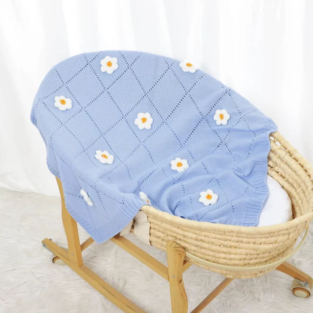 This baby blanket isn’t just a soft cover—it’s a multifunctional essential for your infant. Whether you’re snuggling at home, taking a stroll in the park, or traveling, it keeps your baby comfortable and secure. The 3D floral details make it stand out as a stylish accessory, while the lightweight knit ensures easy wrapping and cozy warmth.
