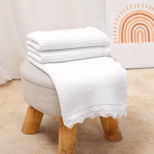This cotton knit baby blanket isn’t just practical – it’s a beautiful keepsake piece you’ll cherish as your baby grows. With its timeless solid color design and soft ruffle detail, it’s a stylish essential for every parent. Whether you’re using it for swaddling, as stroller bedding, or simply for cuddles, this blanket is crafted to bring warmth, security, and comfort to your little one’s early days.