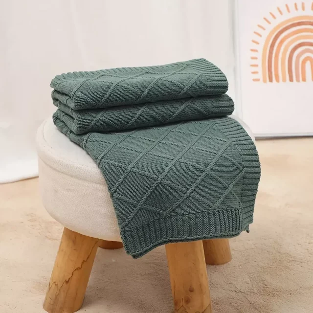 Wrap your little one in warmth and softness with this beautifully knitted baby blanket. Made from breathable cotton, this blanket is designed to keep your newborn cozy all year round. With its classic plaid knit and solid color design, it adds a touch of timeless style to your nursery while being practical for everyday use. Perfect for swaddling, stroller rides, or nap time, this blanket is a must-have for new parents looking for comfort and quality.