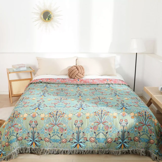 This towel blanket is more than just a blanket—it’s a multifunctional comfort essential. Its soft cotton layers keep you cozy without overheating, while the breathable gauze ensures you stay cool on summer days. Whether you are snuggling on the sofa, adding a stylish layer to your bed, or enjoying a picnic outdoors, it adapts to your lifestyle effortlessly. Its floral jacquard design also makes it a stunning decorative piece, elevating any room or outdoor setup.