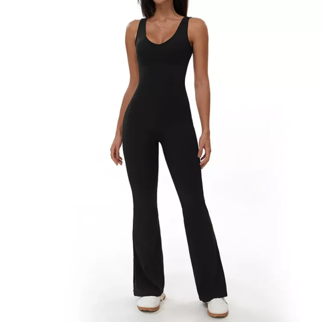 Step into style and performance with this solid yoga jumpsuit designed for women who want both fashion and function in their activewear. This sleek one-piece outfit blends comfort, support, and effortless elegance, making it perfect for yoga, fitness training, or casual athleisure wear. Its body-hugging fit with micro flared legs creates a flattering silhouette while ensuring maximum freedom of movement.