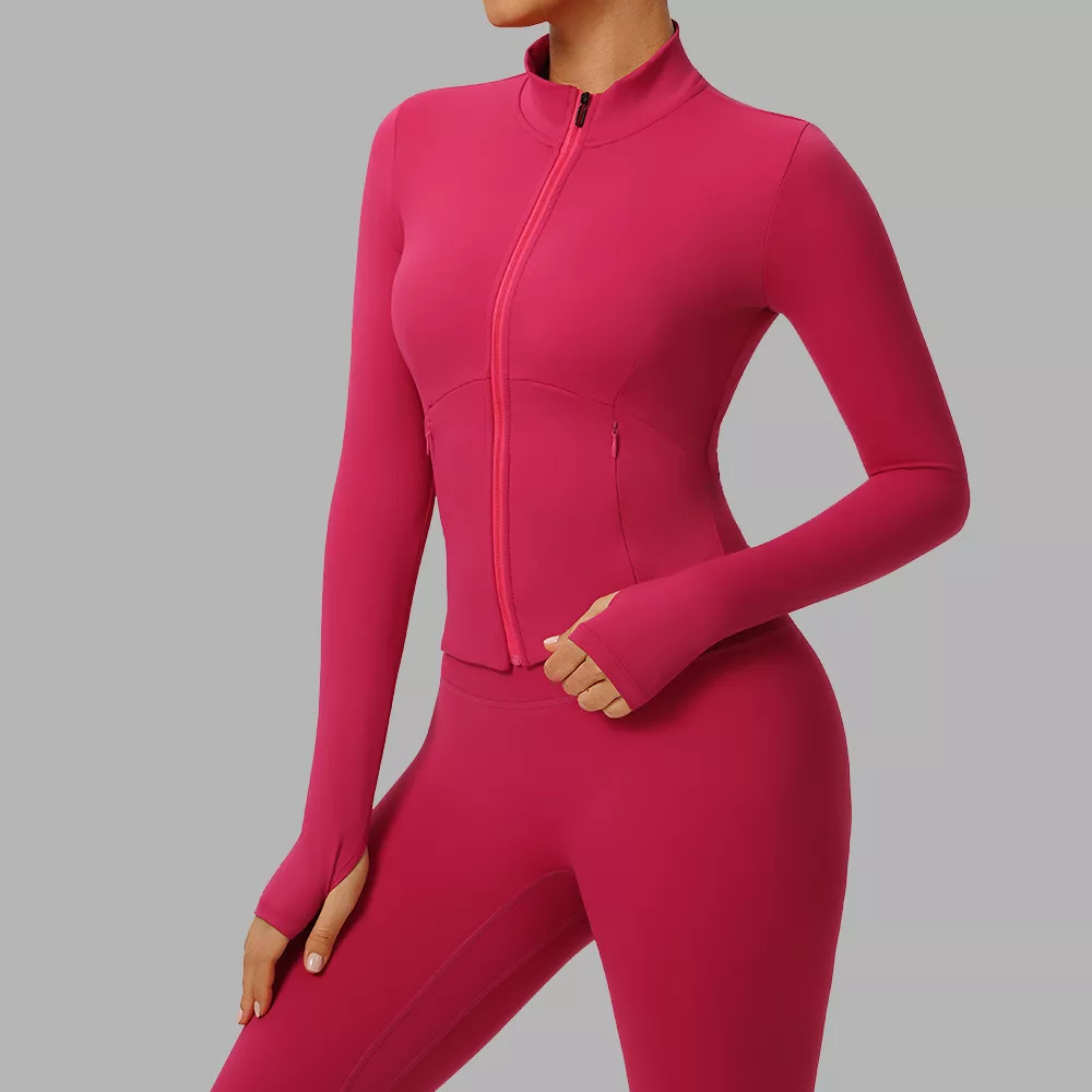 Women’s Contrast Zipper Long Sleeve Workout Jacket – Breathable Fitness Top