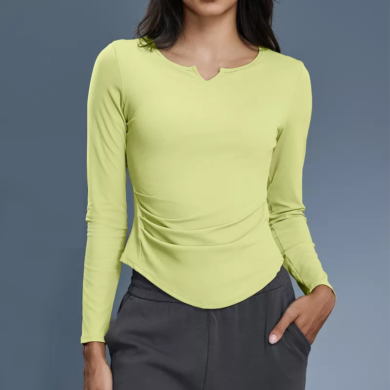Women’s Long Sleeve Ribbed Yoga Top – Breathable Slim Fit Workout Shirt