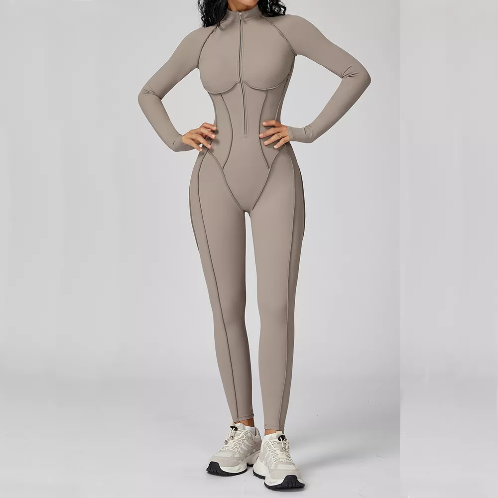Women’s Yoga Bodysuit Breathable Workout Set with Zipper Leggings