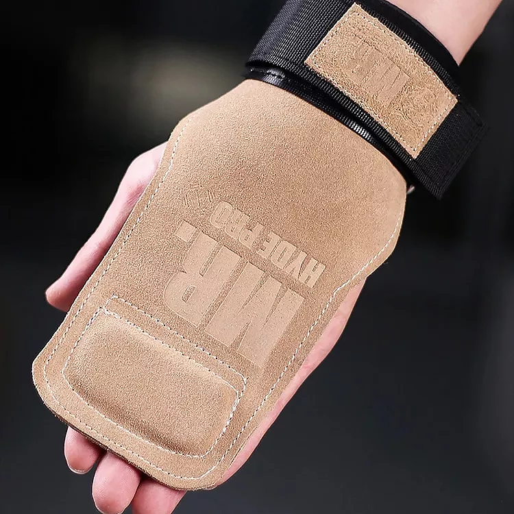 1 Pair Leather Lifting Straps Gym Support Fitness Gloves with Anti-Skid Grips