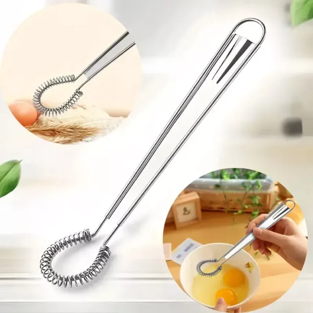 Made from high-quality stainless steel, this whisk is strong, rust-resistant, and built to last. Its long handle gives you extra reach and comfort, while the spring coil head adds extra bounce and flexibility for faster, more even mixing. Easy to clean and lightweight, it’s an eco-friendly kitchen gadget you’ll reach for again and again.