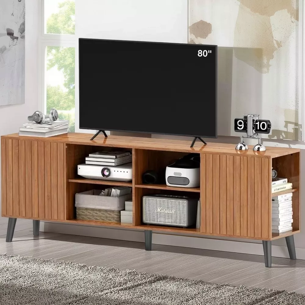 Mid-Century Modern Fluted TV Stand for 70–80 Inch TVs