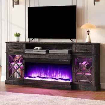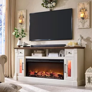 Rustic Farmhouse LED Fireplace TV Stand for 80″ TVs with Storage