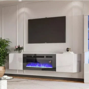 Floating TV Stand with 36″ Electric Fireplace and High Gloss Finish