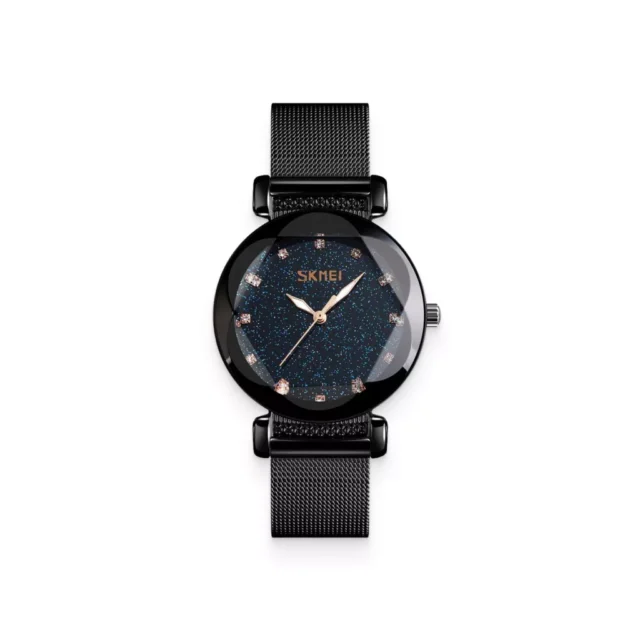 I ordered this watch for my wife after it was recommended to me by a friend. My wife really does like the watch since it caught her attention when she saw it for the first time. She says it is elegant, stylish, and she likes the starry sky dial with the diamond time mark. She likes that it has waterproof, scratch and wear resistant features. My wife likes the analog display, the stainless steel mesh strap and buckle. She says it fits her perfectly after adjusting the strap and she says it is comfortable to wear, easy to put on and take off and she likes that it matches most of her outfits. She says it seems to be made of good quality materials, and appears to be durable, easy on her wrist and keeps accurate time. She says she has been wearing it to her professional meetings and outings and she has gotten few compliments. My wife does like the shiny and smooth front surface and the rounded edges. For the quality and price point, it is great value for money. I would recommend it.