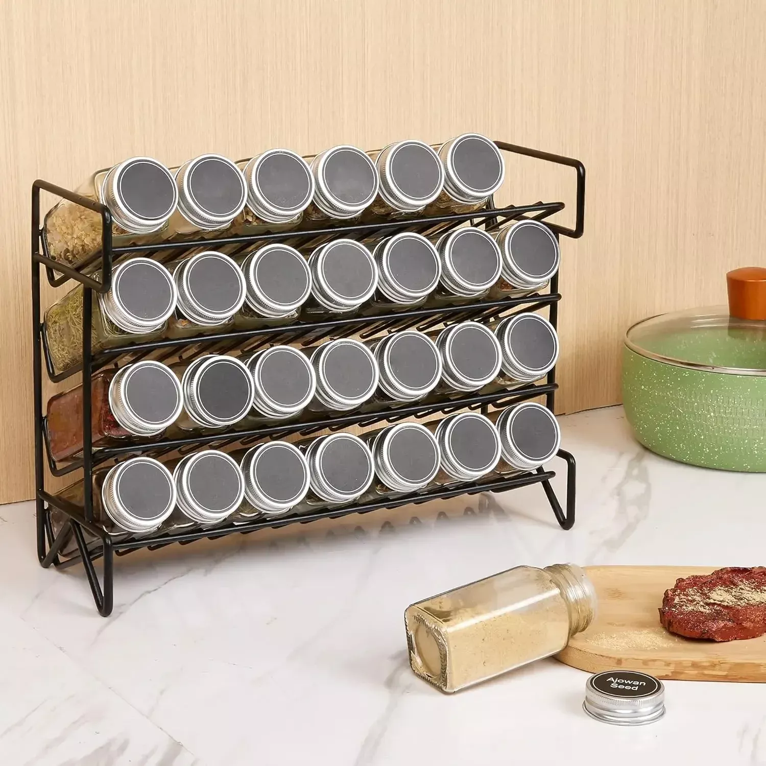 4-Tier Spice Rack Organizer for Cabinet – Space-Saving Seasoning Storage for Kitchen & Pantry