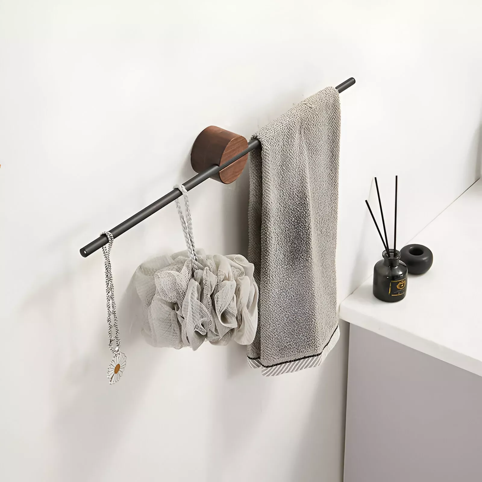 Wall-Mounted Stainless Steel Towel Bar with Hook