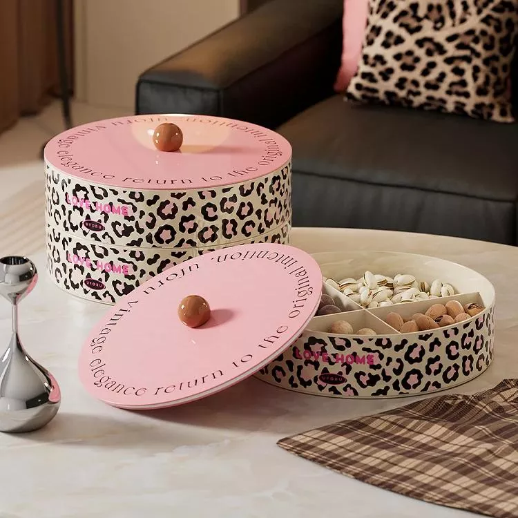 Leopard Print Multi-Tier Covered Fruit Tray with Divided Compartments