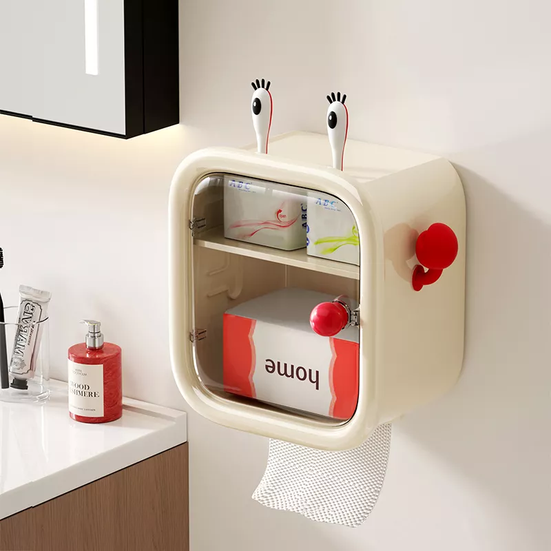 Wall-Mount Bathroom Organizer with Toilet Paper Holder & Storage Bins