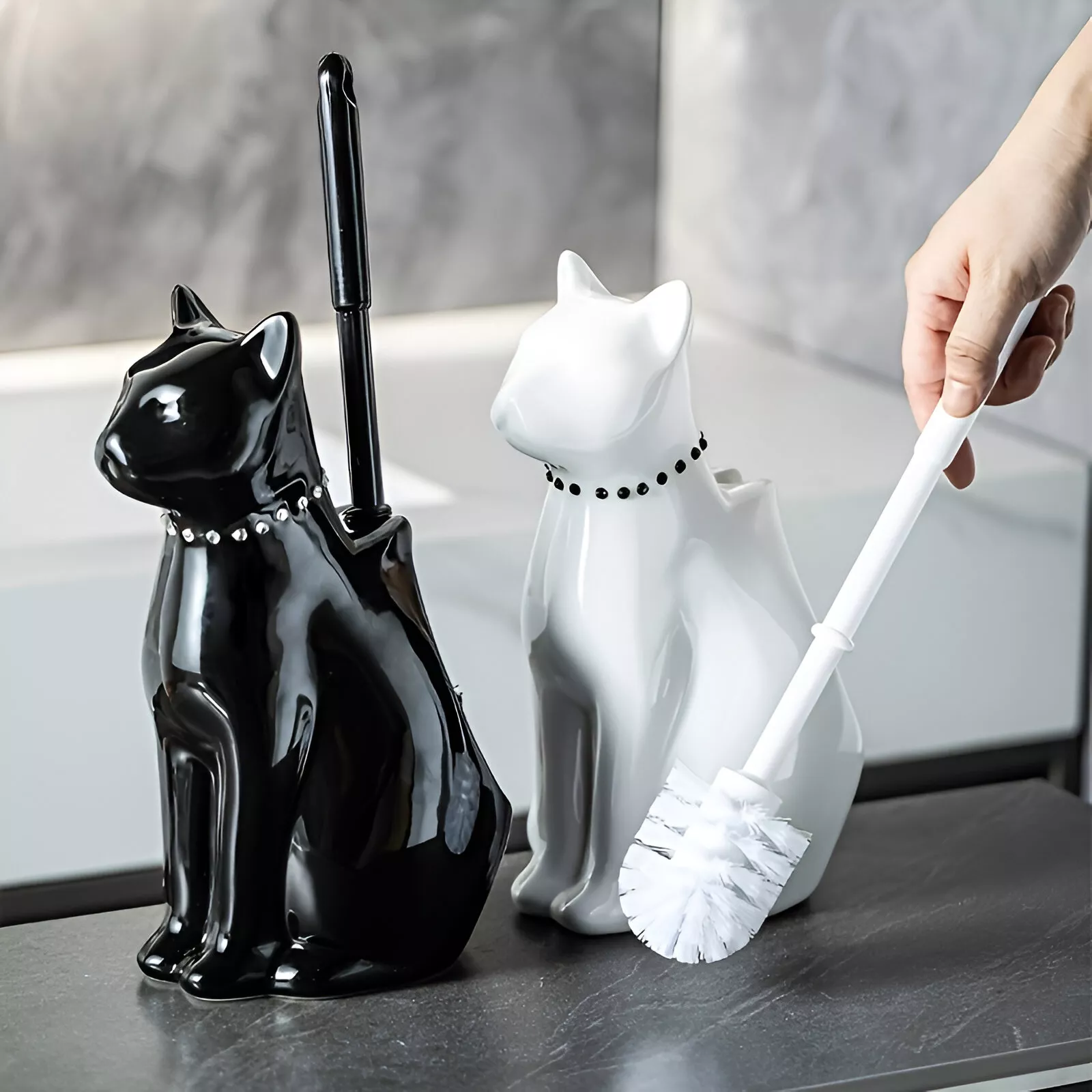 Creative Black and White Cat Ceramic Toilet Brush