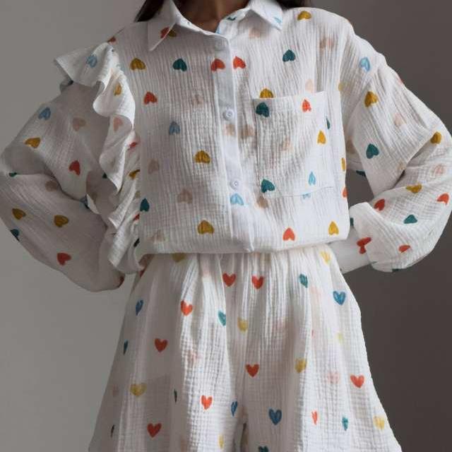 Introducing the ultimate summer ensemble that combines comfort, style, and versatility. Our Summer Casual Cotton Tracksuit for Women is designed for the modern woman who values both fashion and practicality. Crafted from premium cotton with a hint of stretch, this two-piece set promises to keep you comfortable and chic throughout the warm season. Featuring a geometric pattern and adorned with a playful ruffle love print, it’s the perfect outfit for middle-aged women looking to add a touch of youthful flair to their wardrobe.