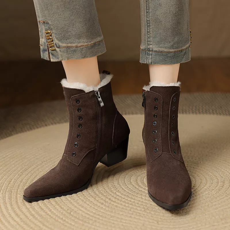 Women’s Sheepskin Side Zip Flats Autumn Ankle Boots – Casual, Comfortable Short Booties