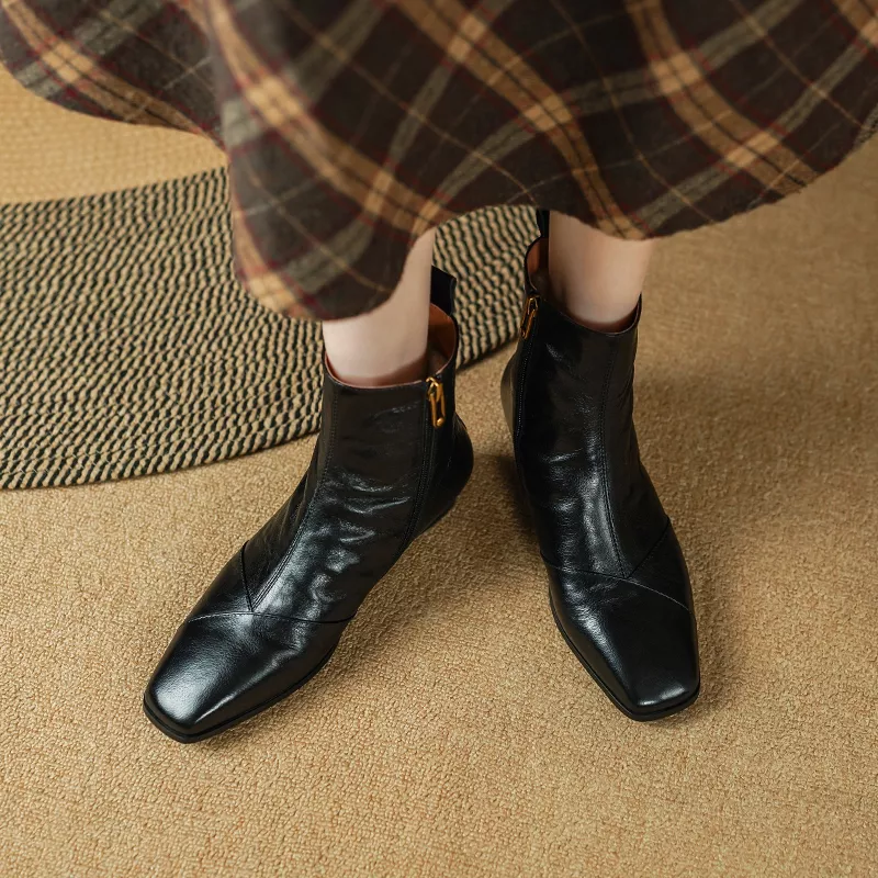 Autumn Split Leather Square Toe Chunky Heel Boots for Women