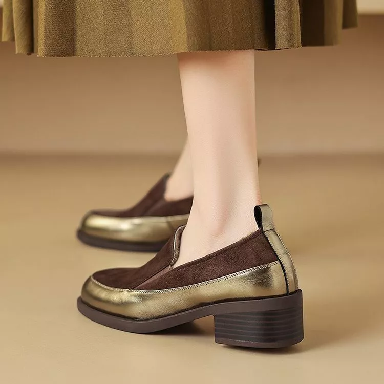 Leopard Print Chunky Heel Loafers for Women – Genuine Leather Comfort Shoes