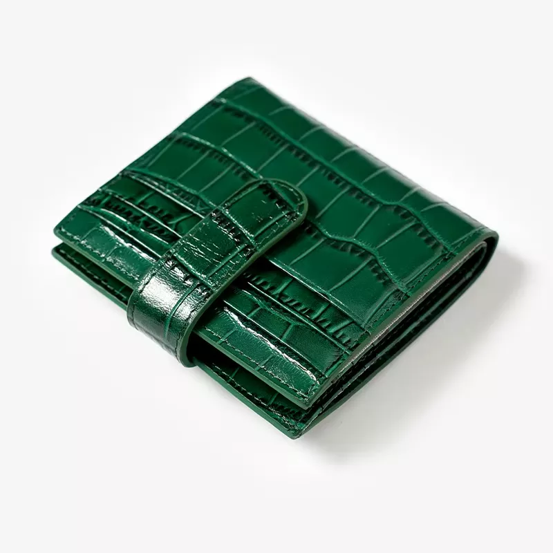 Elegant Green Alligator-Print Leather Clutch Wallet for Women