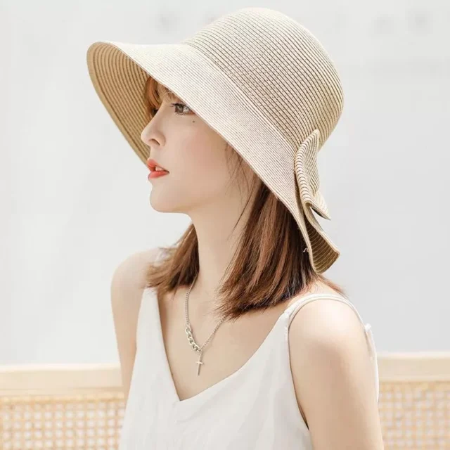 Introducing the Women’s Summer Simple Sun Hat – your ultimate companion for sunny days. Designed with elegance and functionality in mind, this stylish hat features small eaves and a charming bow, making it perfect for beach outings, outdoor adventures, or casual strolls. Made from natural straw, this collapsible hat combines sophistication with practicality, ensuring you stay protected from the sun while looking effortlessly chic.