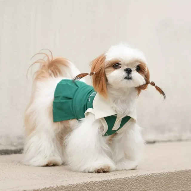 Crafted from soft, breathable spandex, this dress gently hugs your pup’s body without restricting movement. It’s the perfect blend of stretch and style, making it a must-have addition to your dog’s wardrobe. With a solid pastel tone and a tennis dress-inspired silhouette, it’s sweet, simple, and totally Instagram-worthy.