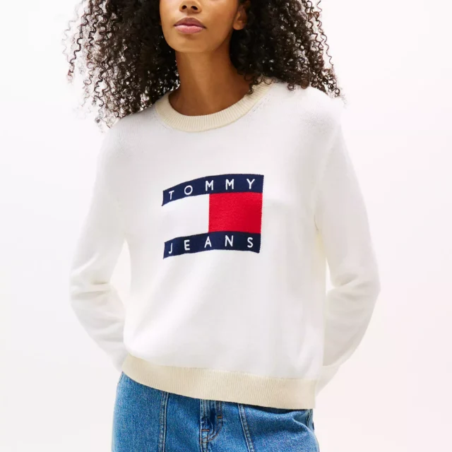 The Tommy Hilfiger Women’s White Knit Sweater is the ultimate combination of comfort and style, perfect for the colder seasons. Crafted from a smooth, stretchy viscose blend, this sweater is designed to fit beautifully while offering all-day comfort. Whether you’re dressing for a casual day out or a cozy evening at home, this classic piece will keep you looking chic and feeling warm. The subtle contrast trim and the iconic flag logo at the chest add a touch of boldness to the timeless crewneck silhouette. This sweater is part of the renowned Tommy Jeans collection, bringing a modern twist to a wardrobe staple.