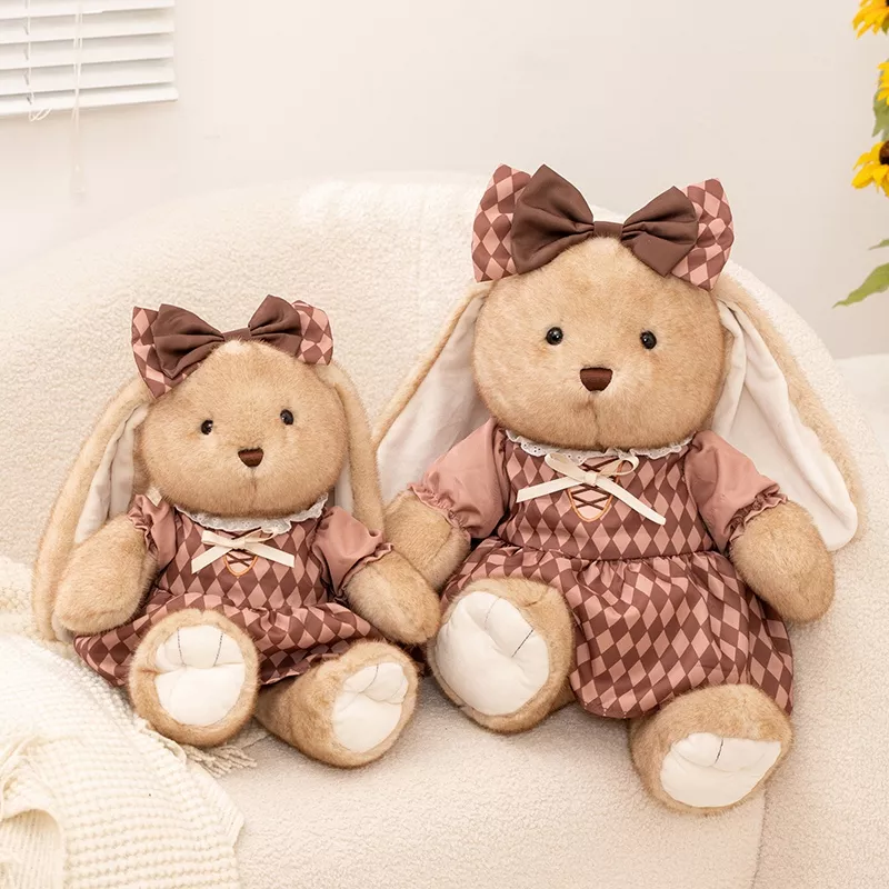 Cute 20in Plush Bear & Bunny Doll with Bow