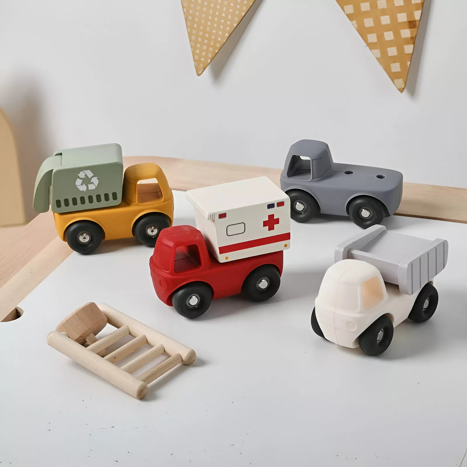 Silicone Baby Teether and Montessori Toy with Detachable Cartoon Car for Babies