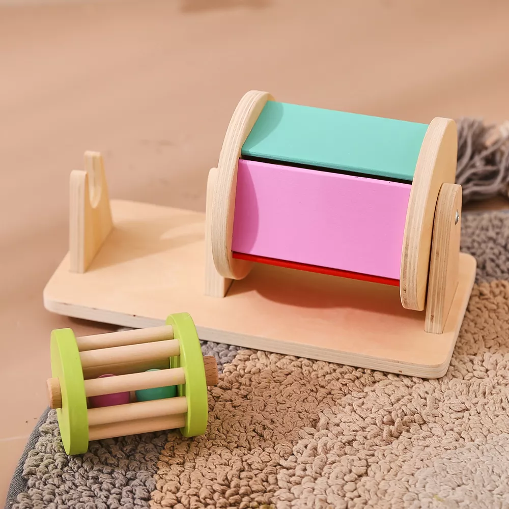 Montessori Rolling Sensory Drum Wooden Color Toy for Babies & Toddlers