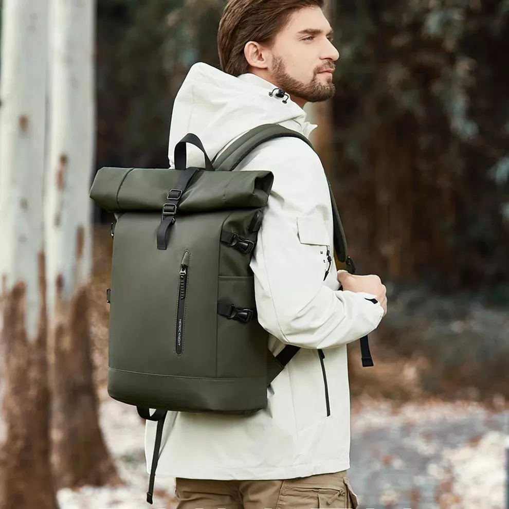 Men’s Rolltop Waterproof Travel Backpack with USB Port