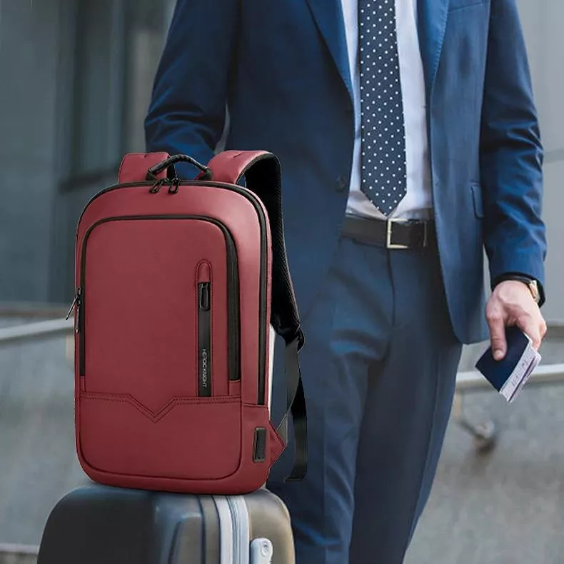 Men’s Slim Waterproof Laptop Backpack with USB Charging Port