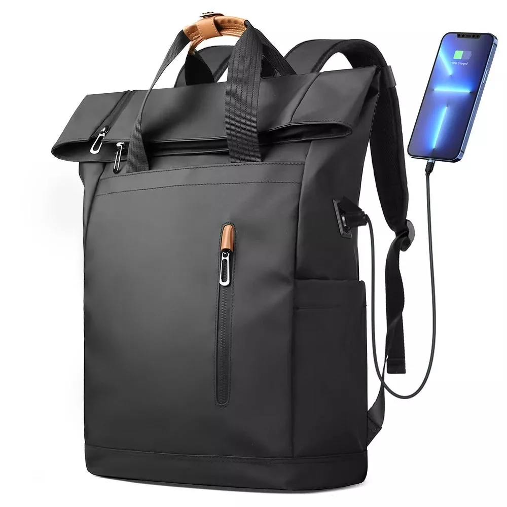 Waterproof Roll Top Travel Laptop Backpack with USB Port