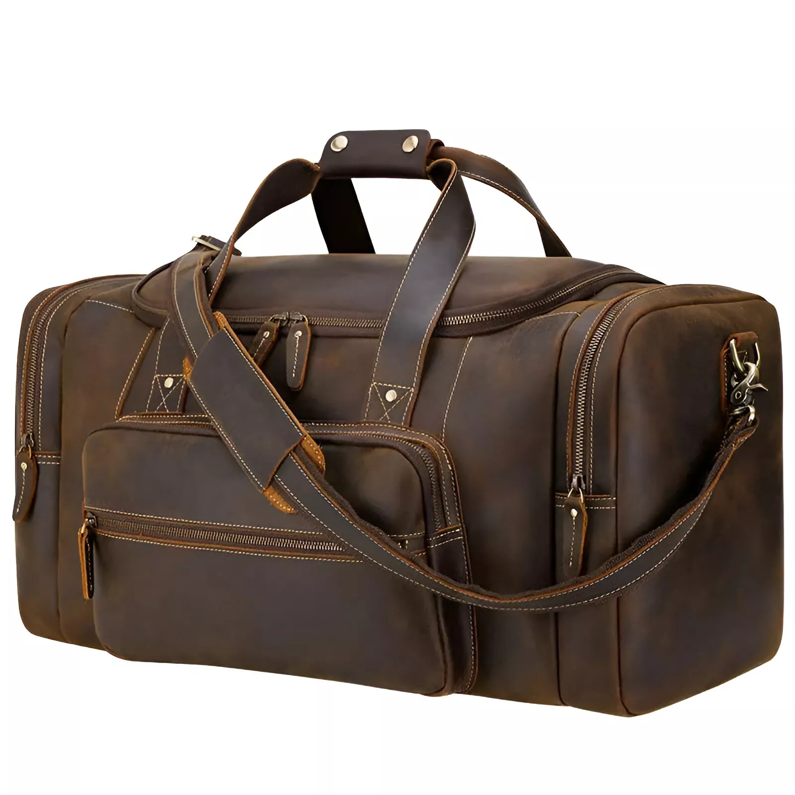 Vintage Full Grain Leather Men’s Travel Duffel Bag – Extra Large Weekender Tote
