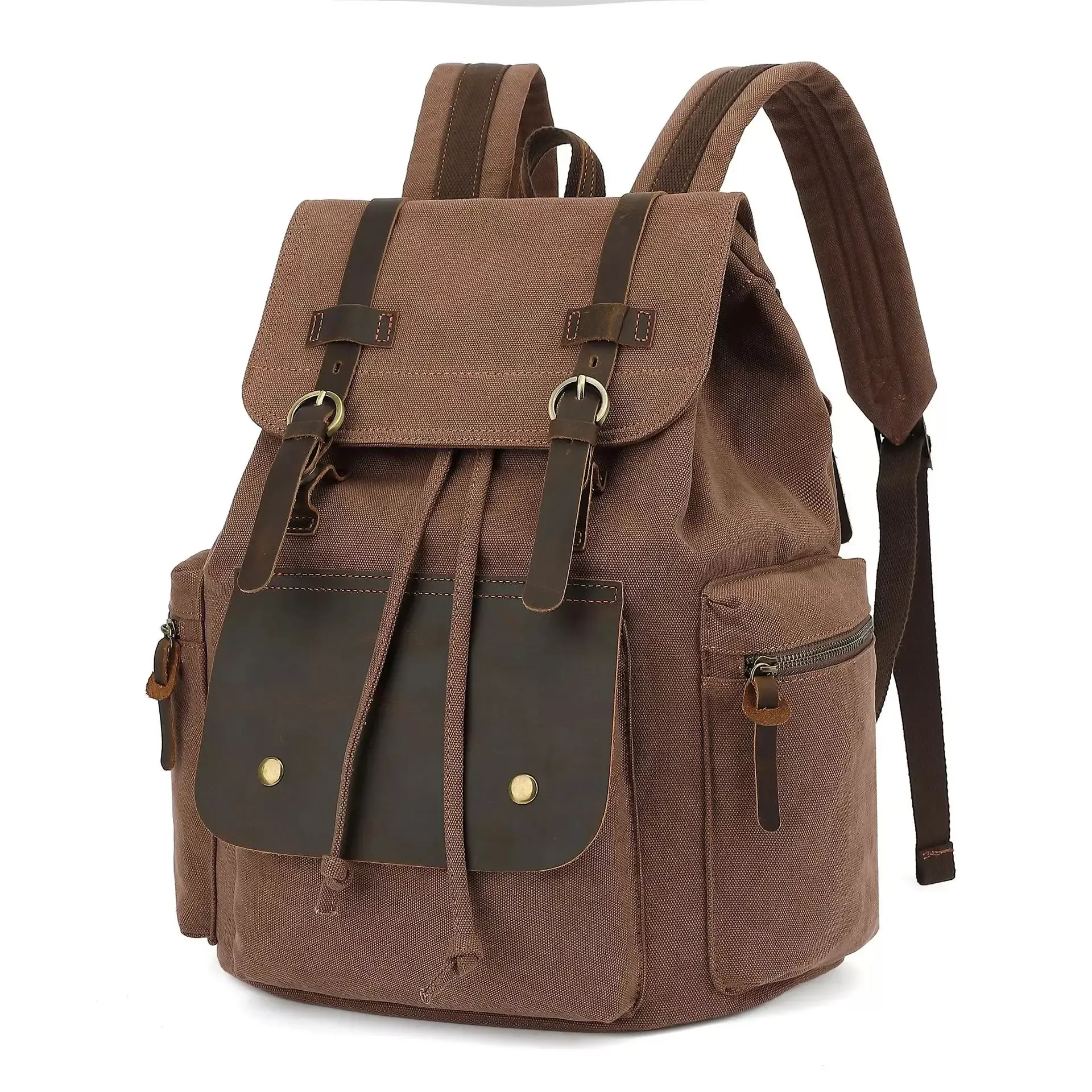 Men’s Vintage Canvas Roll Top Backpack Waterproof Hiking Bag Large Capacity